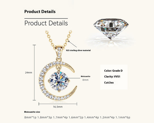 Women's Minimalist Pure Silver Crescent Shaped Moissanite Pendant Necklace